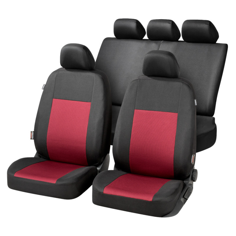 kompletní sada na celé vozidlo, černé/červené, univerzální střih, vhodné pro bočni airbagy, TUV test